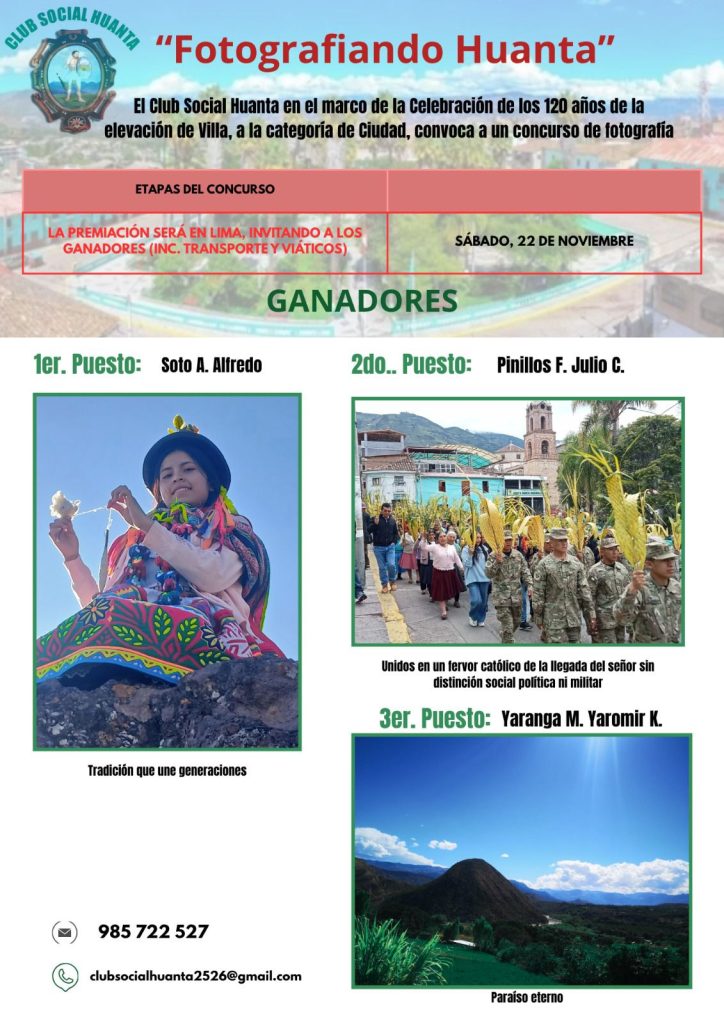Concursos fotográficos, proyección de documentales y cortometrajes que retratan la historia, el paisaje y la gente de Huanta. La imagen como memoria y como identidad colectiva.